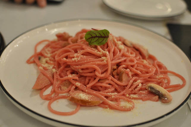 Visiting the store, enjoying "light food" at "M+" in summer and taking photos with pink pasta.