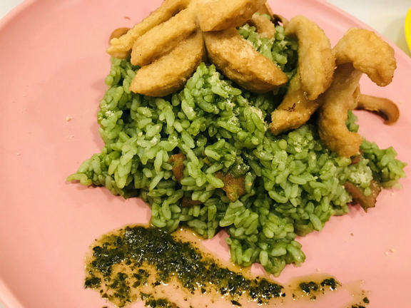 Here comes the main course! When the fried lamb chops and risotto are served at one end, the fragrance will come to the nose. Lamb chop looks ordinary, but it tastes particularly fresh and tender. The same is true of risotto, which seems simple, but the rice grains absorb the soup, and then are wrapped with fragrant cheese, with a little hard core and a special taste. If you eat it in one bite, the layers are distinct and the taste is rich.